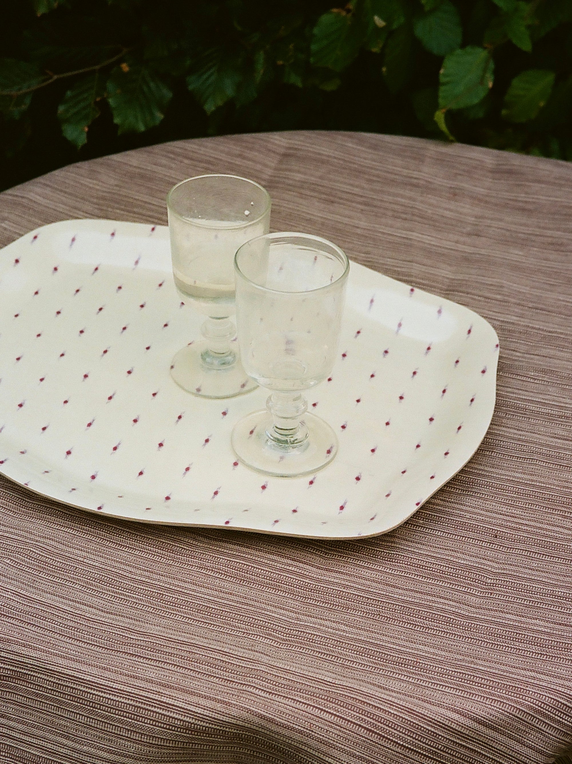 Introduced in seven colourways: Cream, Ochre, Rust, Sage, Ocean, Indigo and Plum- each colourway is a delicate interplay of the two-coloured yarns, creating fine irregular stripes that echo the artistry of a hand-painted warp.