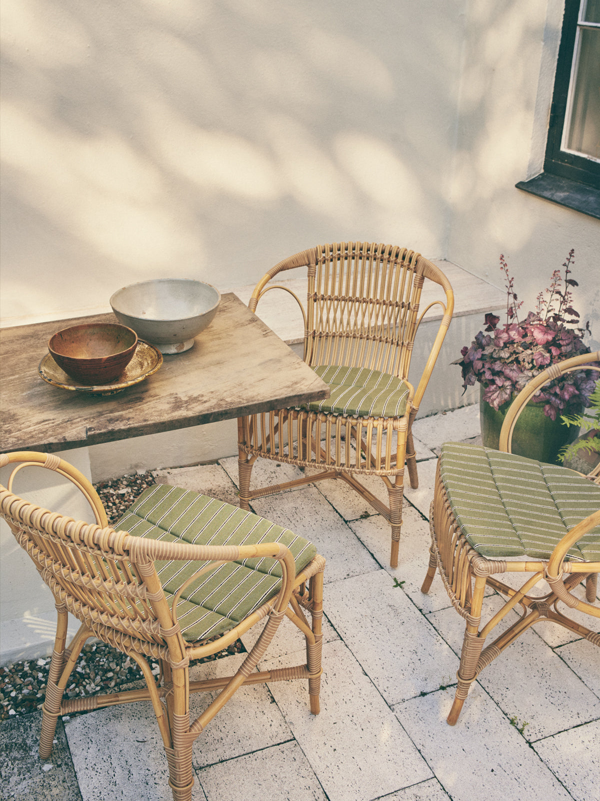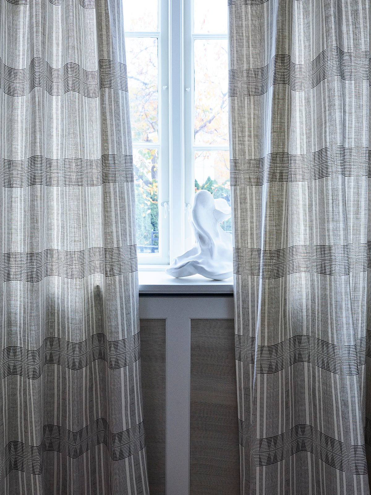 Curtains and cushions in Eivor's Stripe Fabric, Canvas