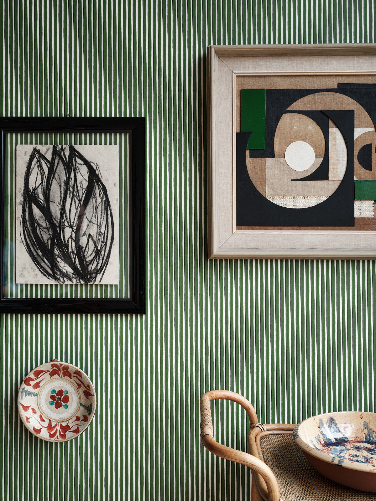 Pouf upholstered in Eivor's Stripe Fabric, Moss