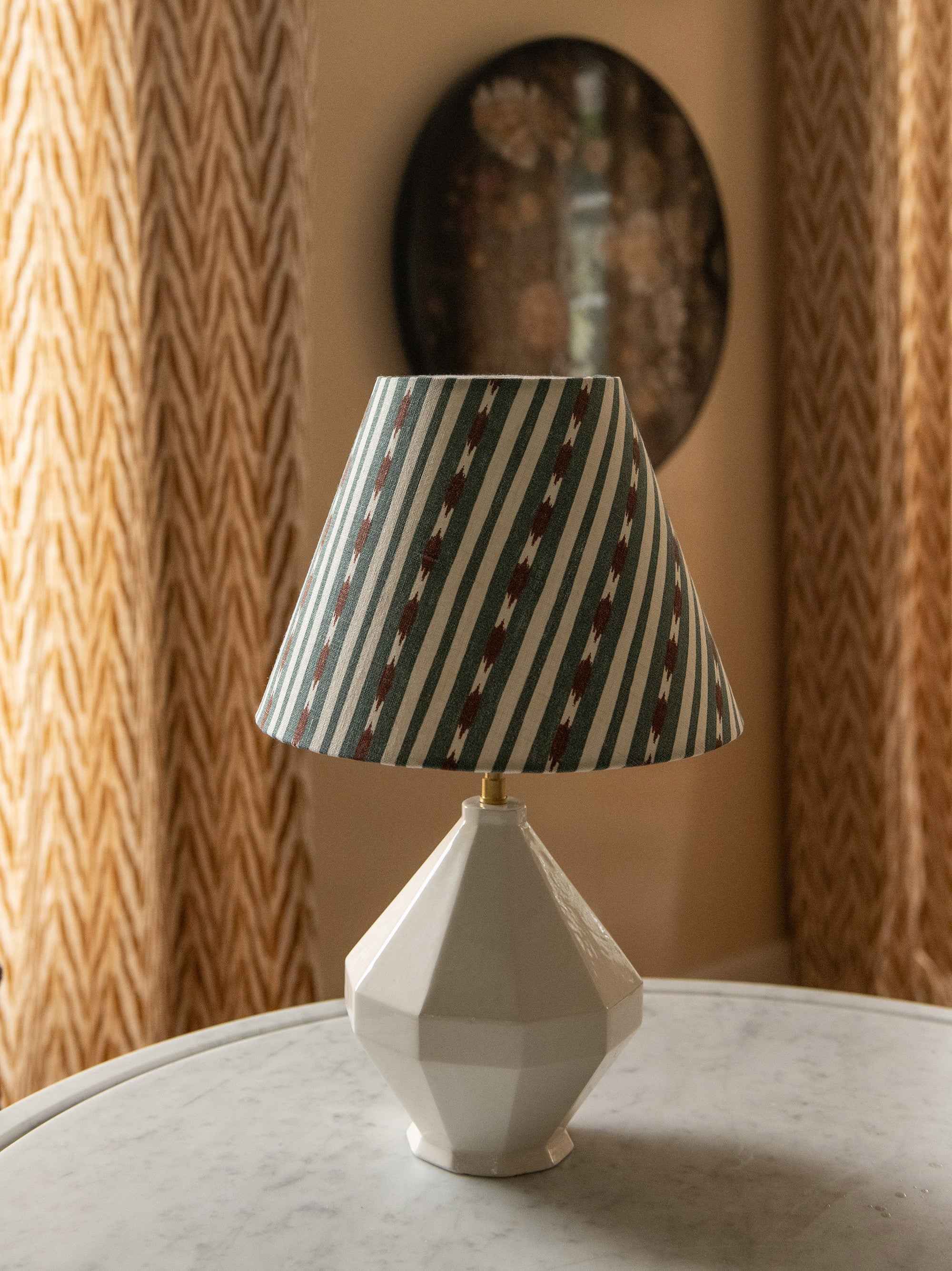 Crafted in Eivor's Stripe, the Empire Card lampshade has a timeless look with old-school references and works beautifully with both a contemporary and vintage lamp base for a modern and classic décor. Using precious materials is important for us; therefore, all lampshades are carefully crafted in fabrics from our printed or woven collections.
