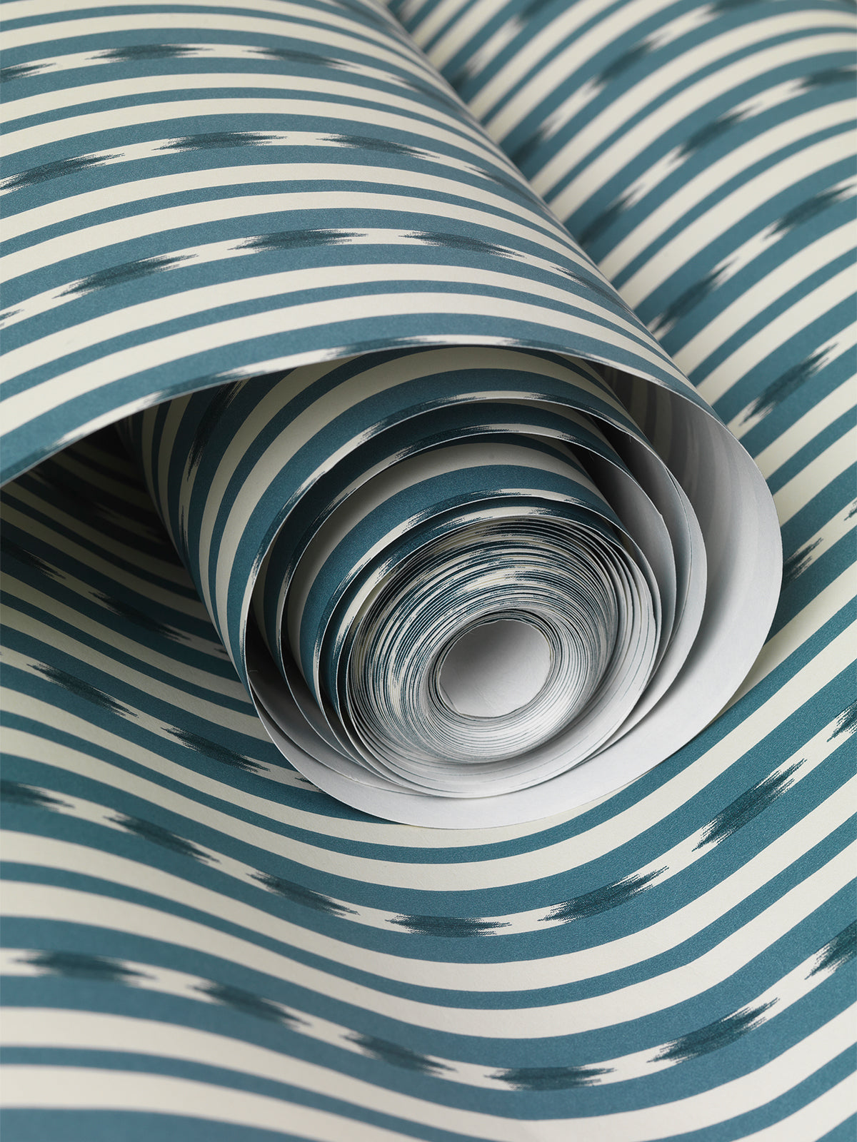 Eivor’s Stripe is an enhanced delight of colour, with a stylish nod to superb craftsmanship and detailed romantic spirit. A chic wallpaper design embracing the subtle marriage of graceful lines, embellished organic ikat shapes, and decorative modern flair.
