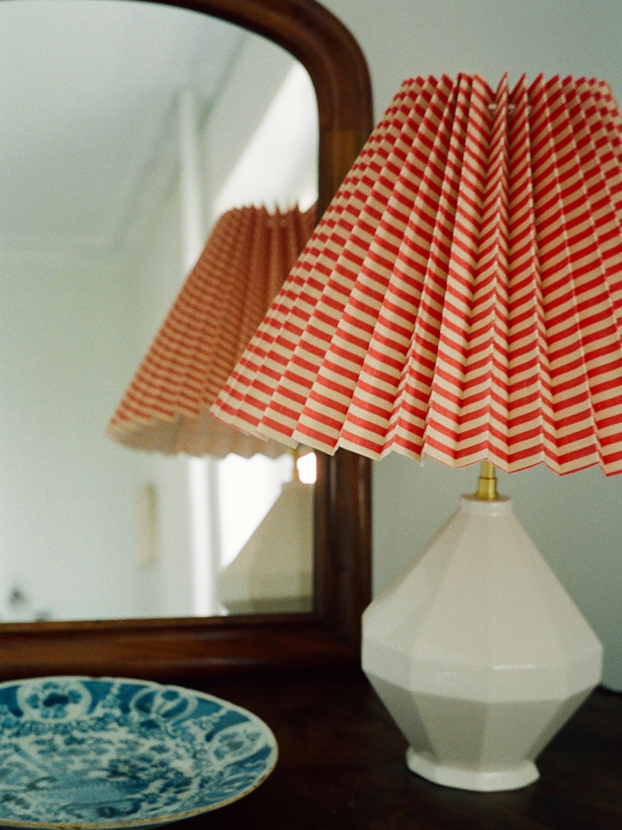 Moiré Stripe Pleated Lampshade, Scarlet