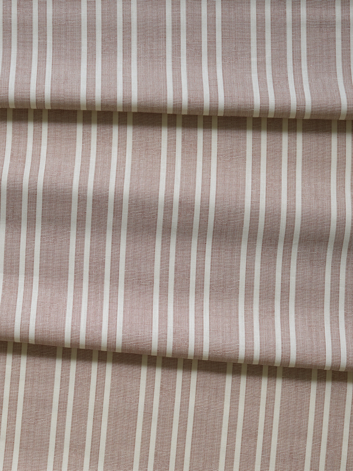 Needlepoint Stripe has a careful repetition of countless hand-drawn oval dots and is inspired by traditional needlework and embroidery, forming a soft textured stripe. The fabric brings grace to the space, which is excellent for achieving a refined, stylish interior setting.
