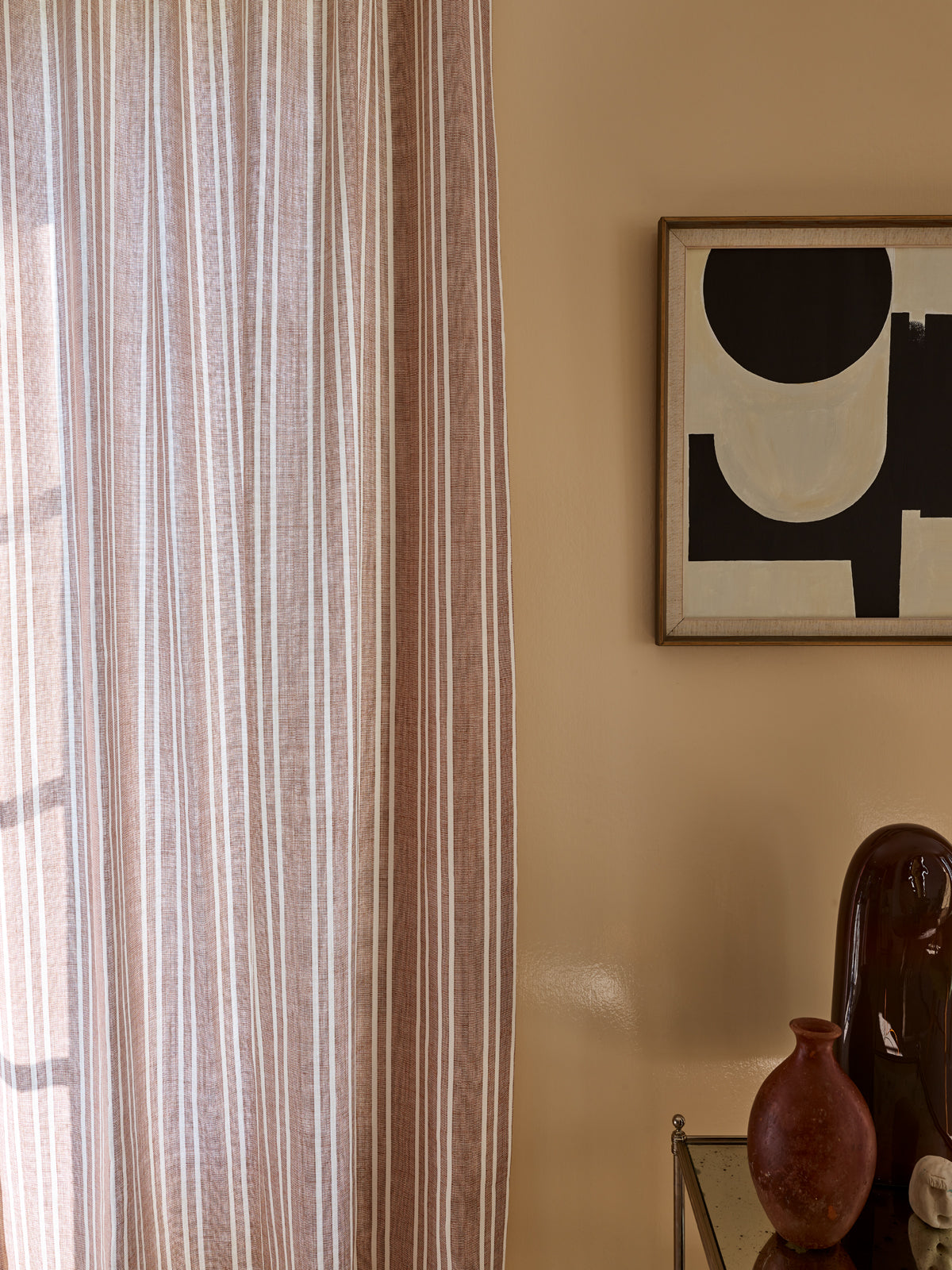Printed on 100% luxurious Belgian linen, the fabric is ideal for curtains and soft furnishing.