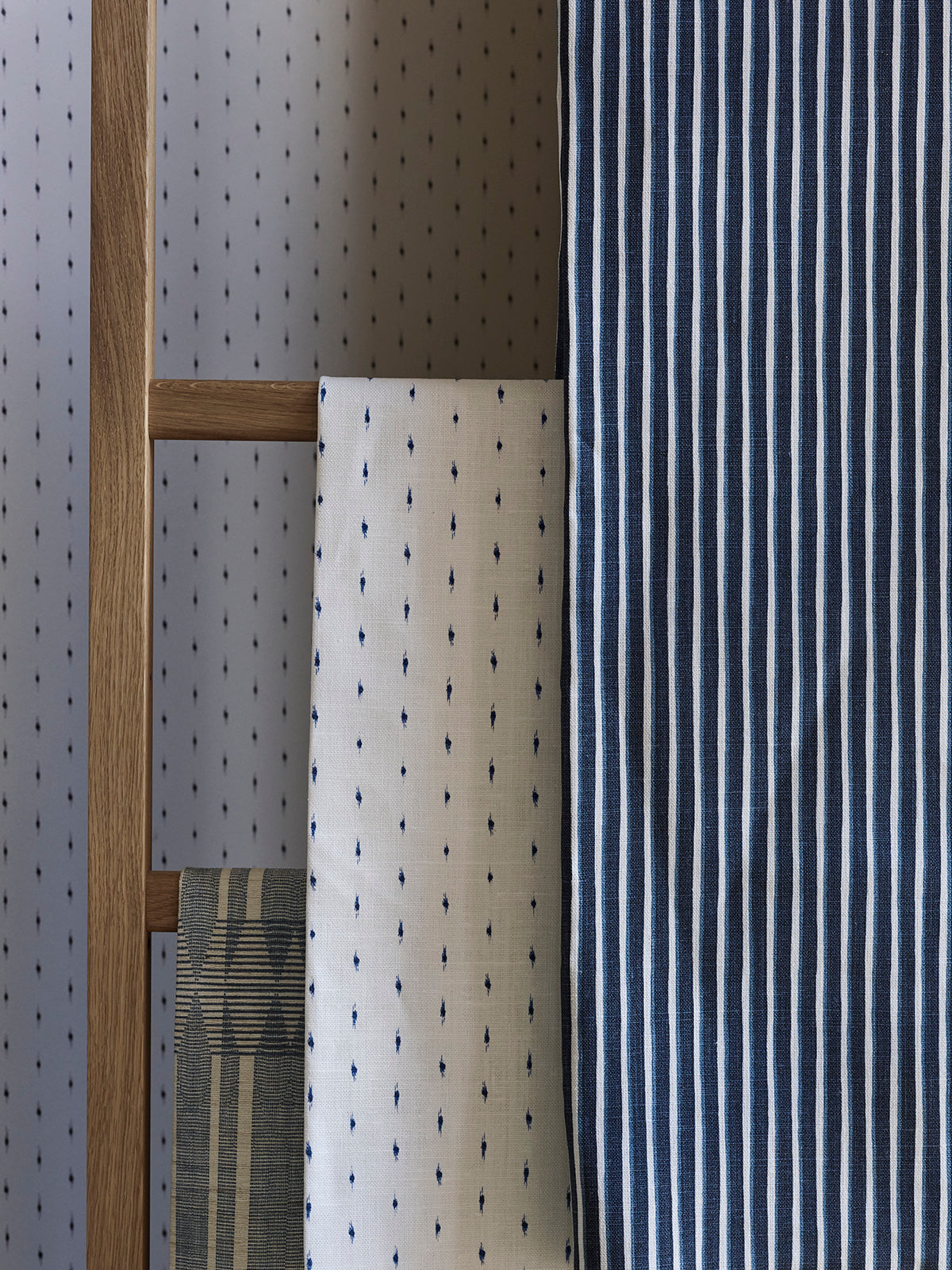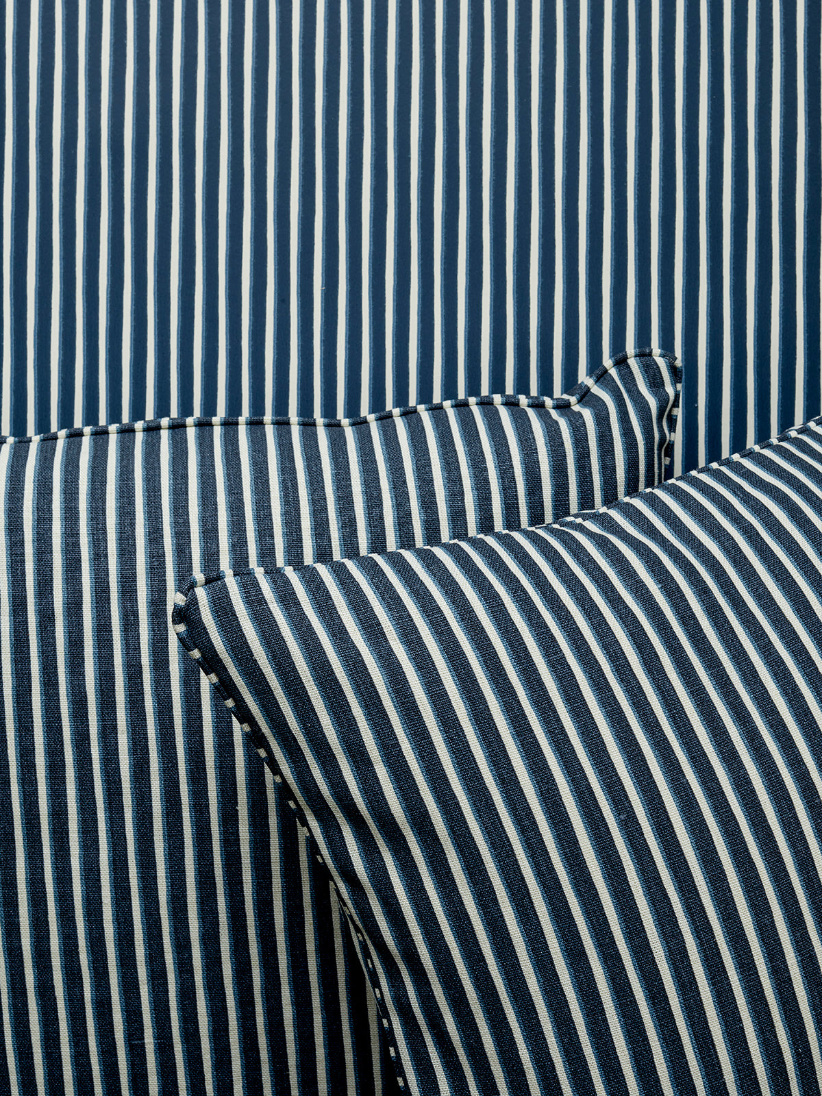 Painted Stripe fabric has a playful spirit and timeless character. Adorned with soft hand-painted lines, it reflects a love for the design's 'perfectly imperfect' feel, underpinning the printed fabric's arts and crafts mood.