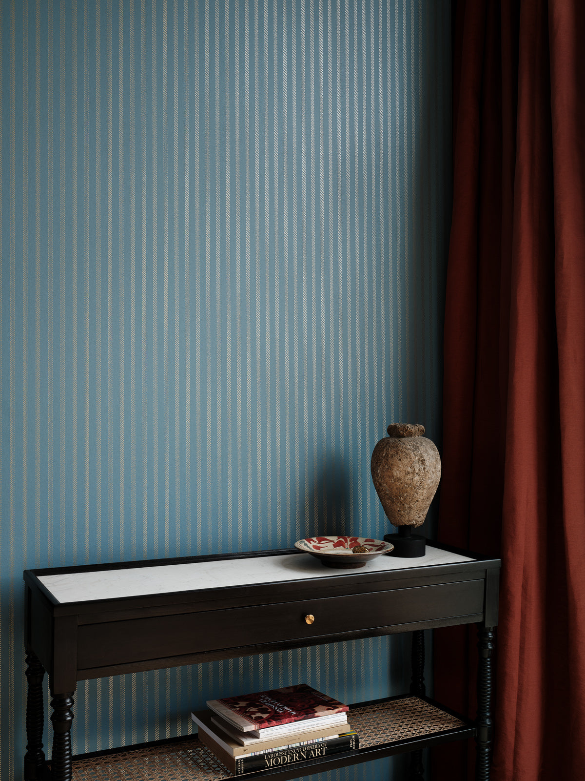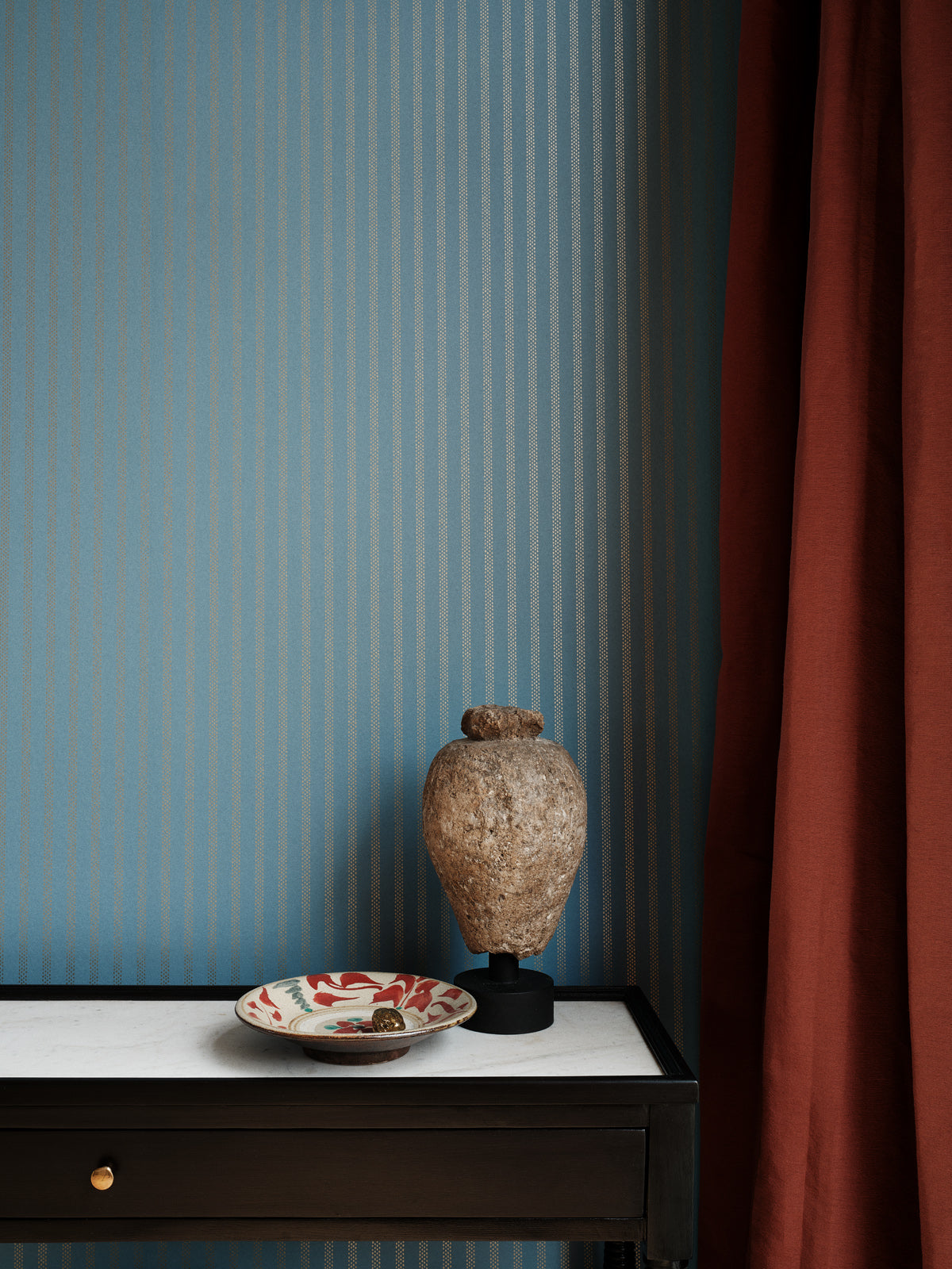 Polka Stripe wallpaper has a definitive elegance yet modern feel and exemplifies Helene Blanche’s fascination of dots and stripes. With its soft poetic expression, the wallpaper adds to the overall feel of a deliberately minimalistic and classic style.