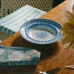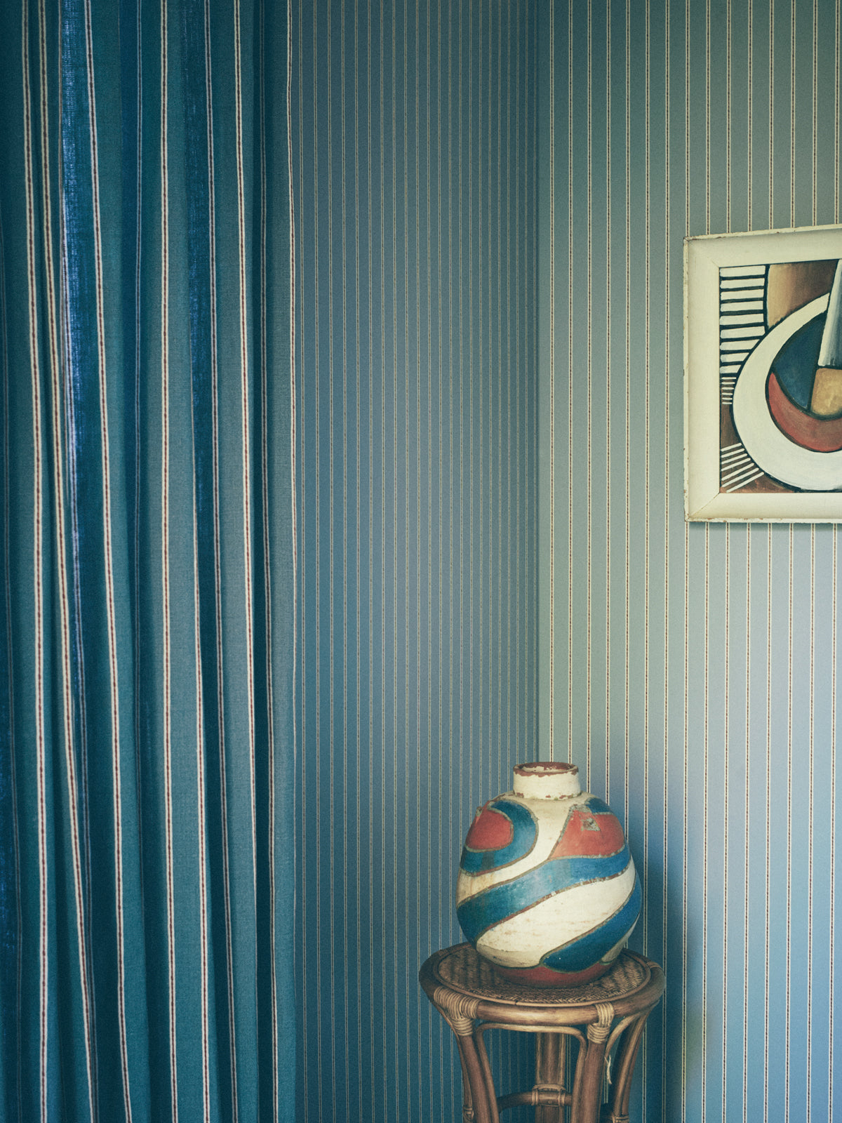 Printed on heavy-weight 100% Belgian linen, the fabric is ideal for curtains, soft furnishing, and light upholstery. Ribbon mimics colorful ribbons lying intertwined and celebrates stripes with a bohemian, understated, timeless elegance, and Scandinavian spirit.
