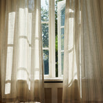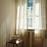 Vera's Stripe fabric is printed on 100% hemp, a slightly translucent sheer fabric that is beautiful for curtains and blinds.